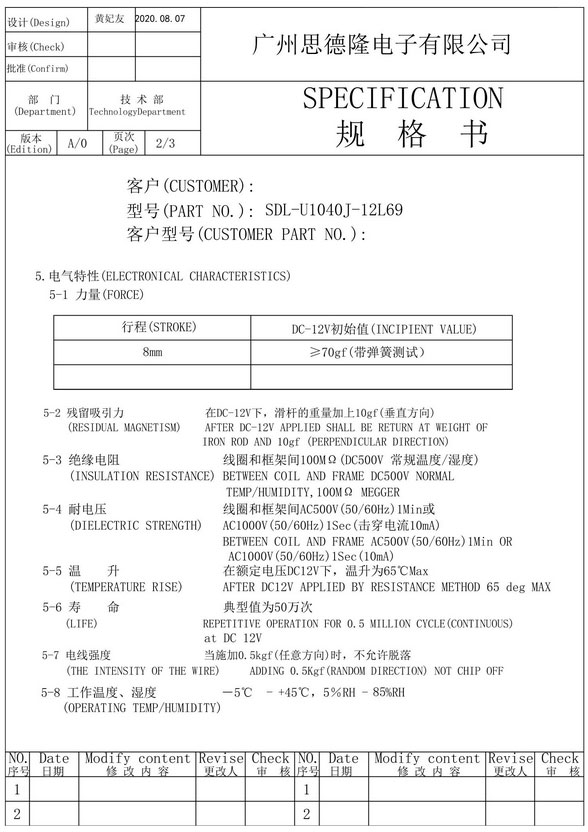 | 耐溫: | 壽命: | 耐電壓: | 初始力: | 70g克服彈簧 | |||