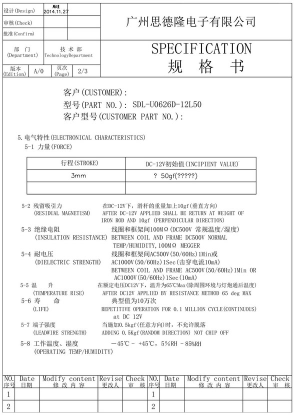 | 電壓: | DC12V | 行程: | 10mm | 電阻: | 50.5歐 | 功率: | 2.85W |